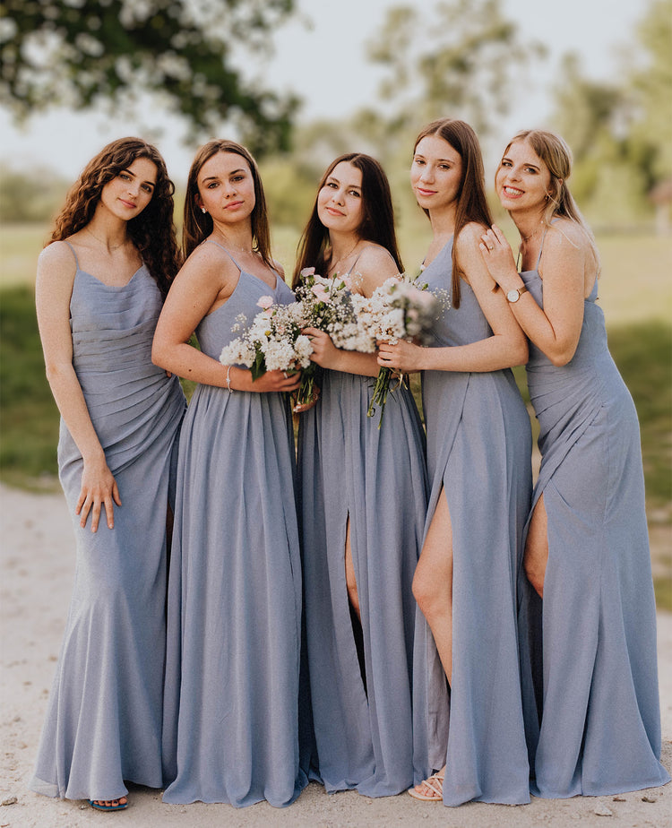 Don't forget to bridesmaid dresses with sleeves to keep your girls warm if you go for a winter wedding. Whatever silhouette or style you choose, we have the perfect gowns for your sisters and friends.