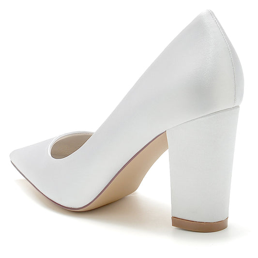 Women's Chunky Heel Silk Satin With Flower Closed Toe Wedding Shoes