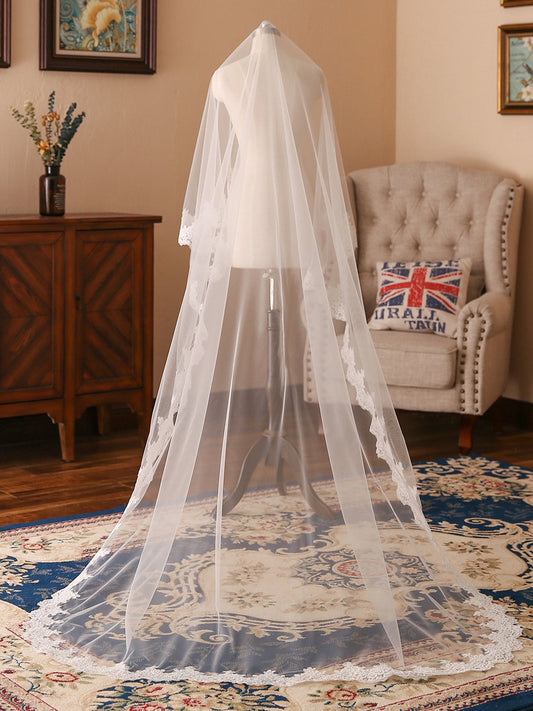 Elegant Tulle One-Tier Chapel Long Bridal Veils With Applique