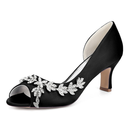Women's Silk Satin Pearl Peep Toe With Rhinestone Stiletto Heel Evening Shoes