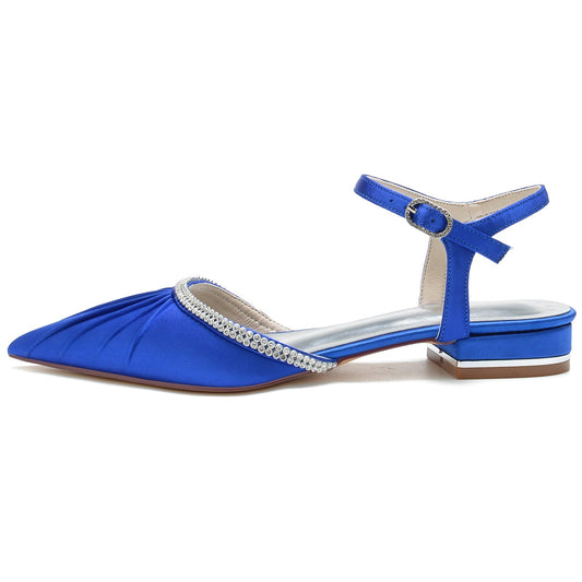 Women's Silk Satin With Closed Toe Flat Heel Rhinestone Wedding Shoes