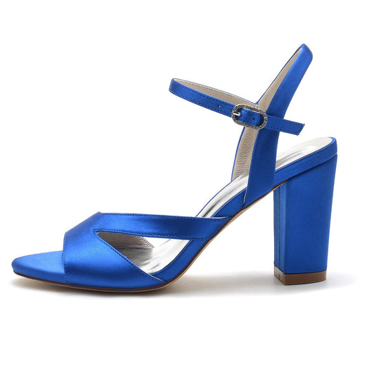 Women's Silk Satin With Peep Toe Ankle Strap Chunky Heel Wedding Shoes