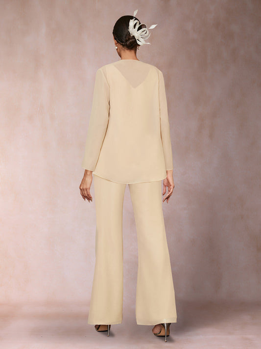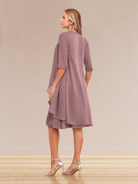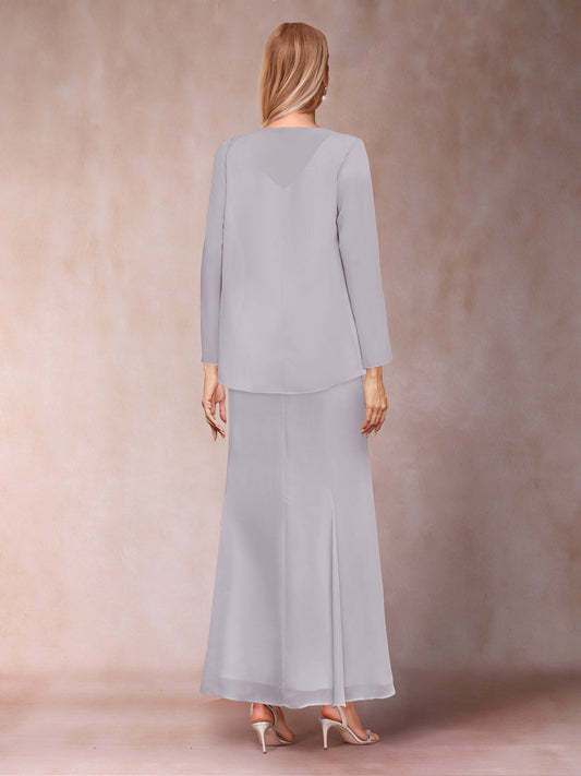 A-Line/Princess V-Neck Chiffon Long Evening Dresses with Jacket & Appliques