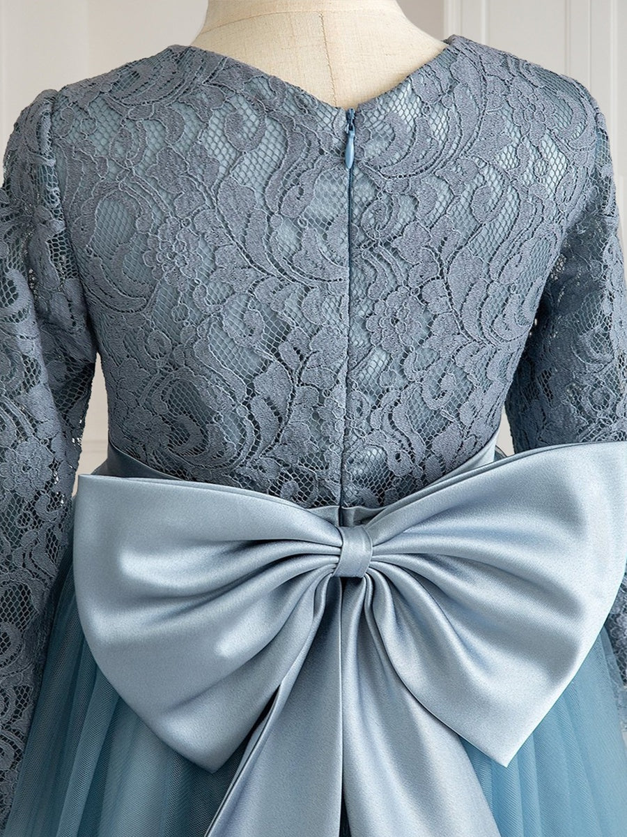 #Dana 96641071 Ball-Gown Scoop Floor-Length Long Sleeves Flower Girl Dresses With Bow