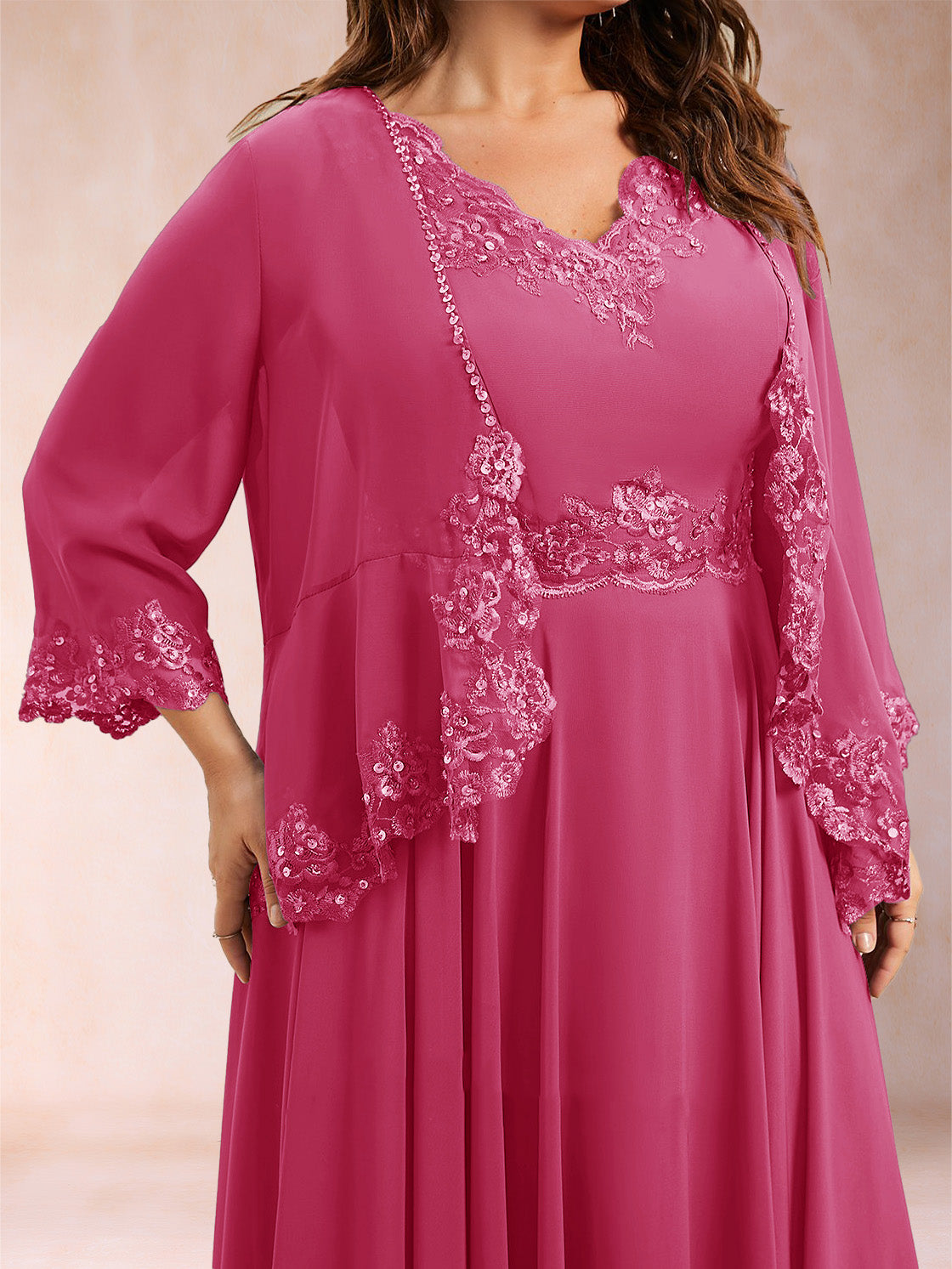 #Eime JKT12010420 Chiffon 3/4 Sleeves Mother's Cardigan With Beading Appliques Lace