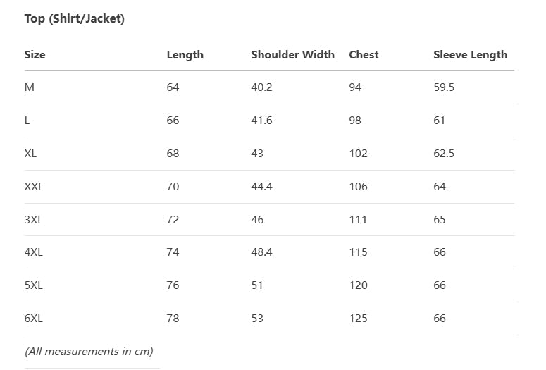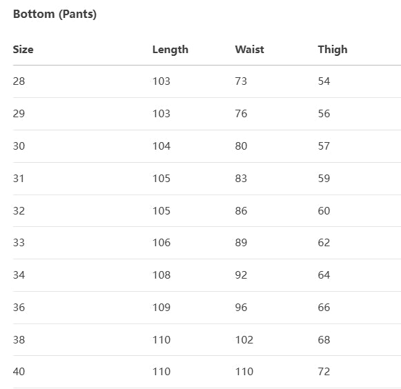 SIZE CHART (CM)