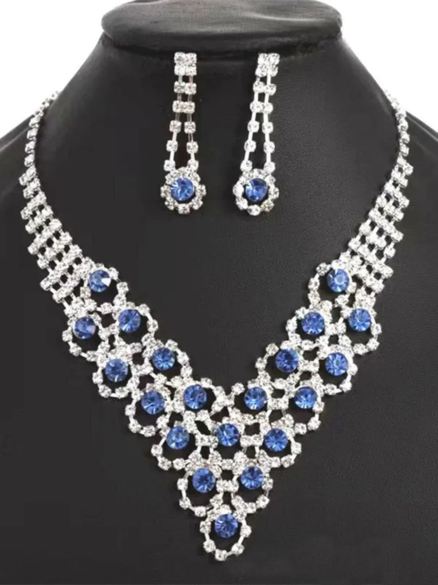 Women's Shiny Crystal Necklace Earrings Delicated Jewelry Set
